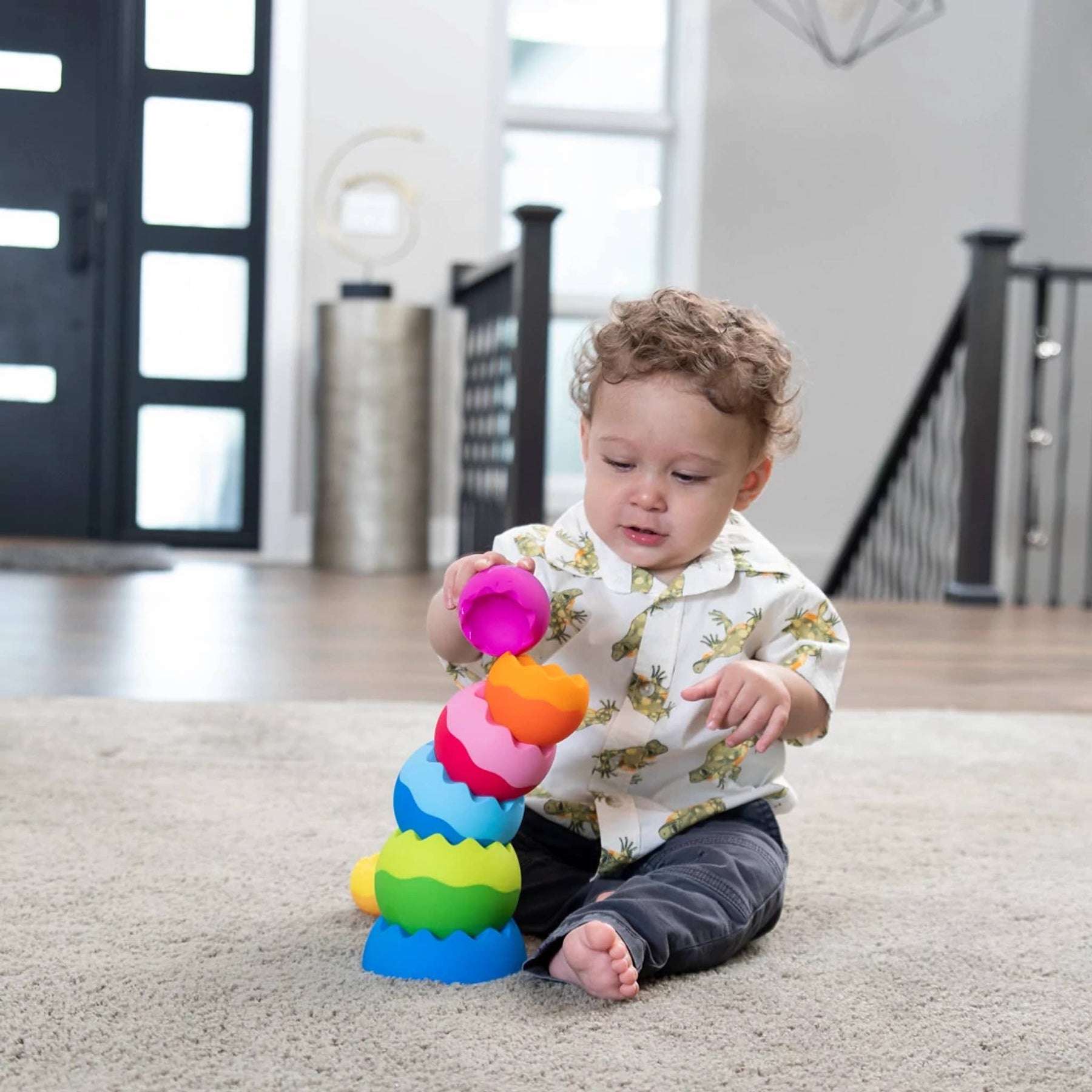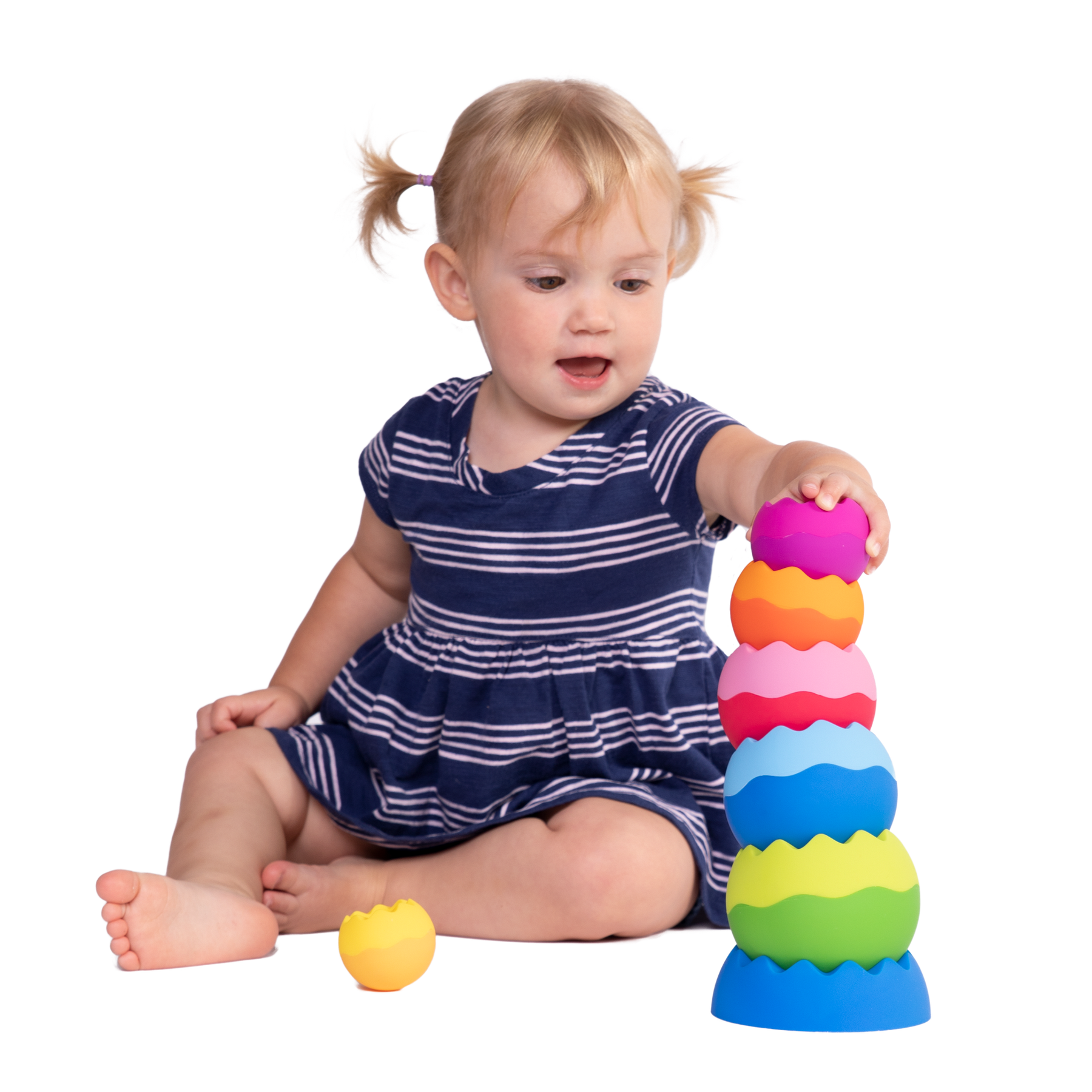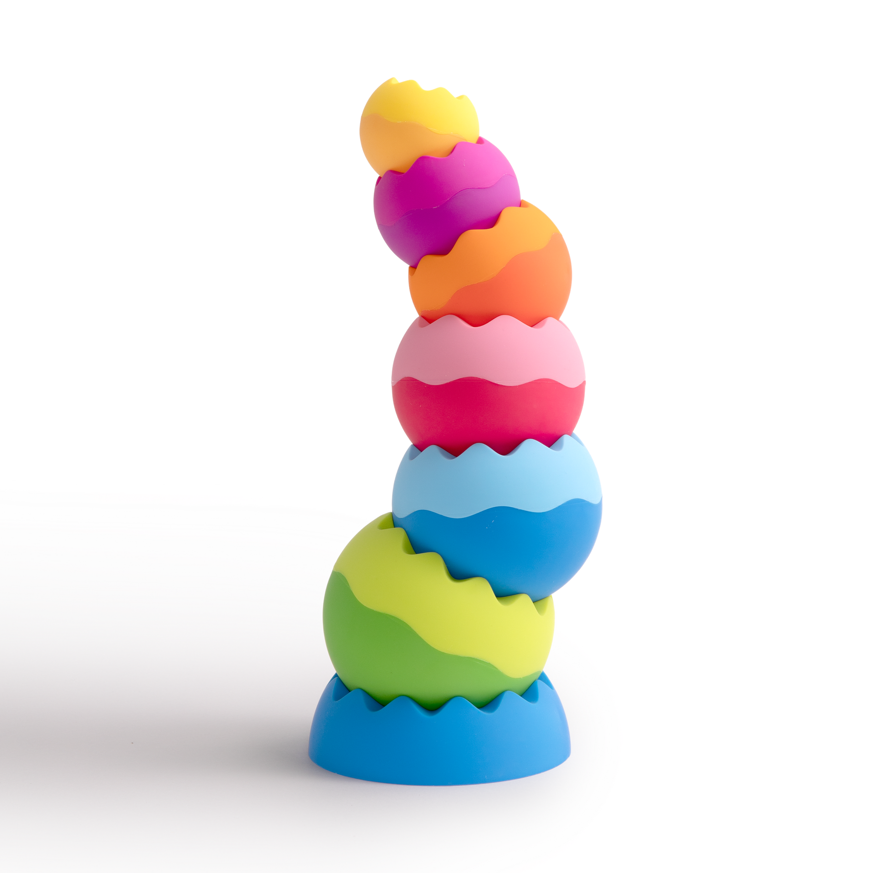 Tobbles Neo is irresistible play in motion—bright, cheerful, and beautifully designed for little hands to explore. Each piece is softly textured and uniquely weighted, inviting children to grasp, wiggle, tilt, wobble, stack, and topple again and again. The gentle curves spark curiosity, while the physics of balance and motion unfold naturally through joyful experimentation.