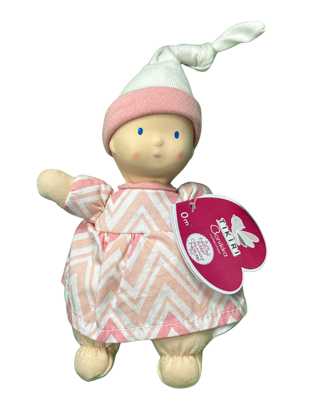 Doll with Rubber Head - pink & white chevron dress, light skin