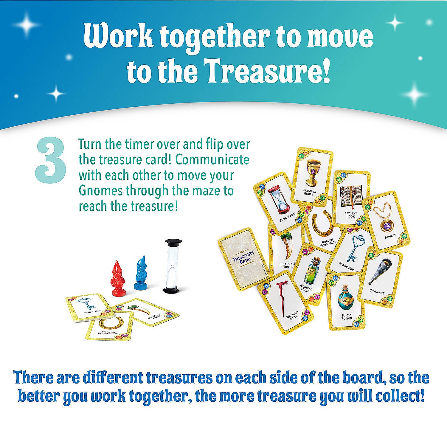 This cooperative game encourages teamwork, communication, and quick thinking. Win together by finding all the treasures in time!