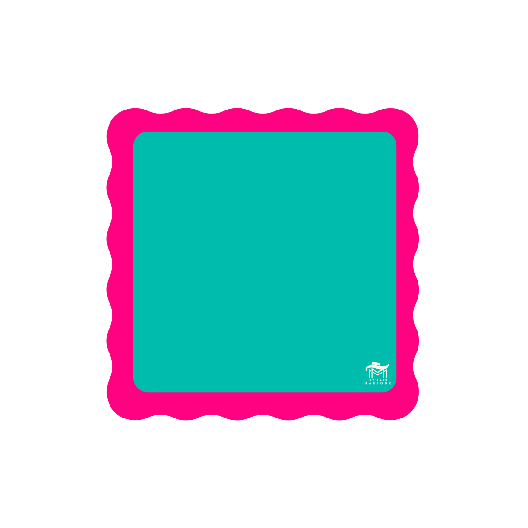 The Original Mini Scalloped Mahjong Mat We were the first to bring scalloped edges to the mahjong table – because playful details matter. This bold, portable mini mat fits perfectly in any My Fair Mahjong Mini Travel Set bag, folding and rolling for easy on-the-go fun. The simple center keeps your tiles in the spotlight, while vibrant color options add joy to every game. Made from neoprene with a non-slip backing, it’s machine washable and designed for real-life play. Dimensions: 21" x 21".