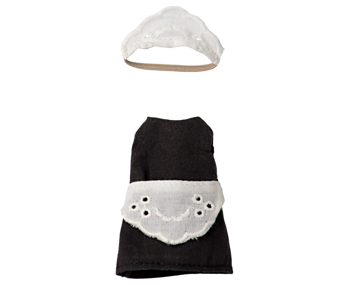 This mouse will for sure be the perfect help in "mouse"keeping. The mouse is classically dressed as a maid and ready to serve all guests. She has magnets in her hands so it is easier to hold the metal kitchen utensils.