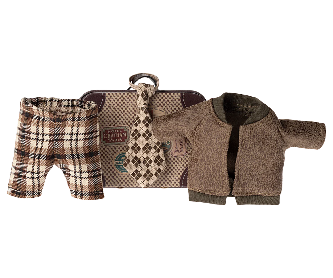 Maileg Jacket, Pants, and Tie in Suitcase for Grandpa Mouse
