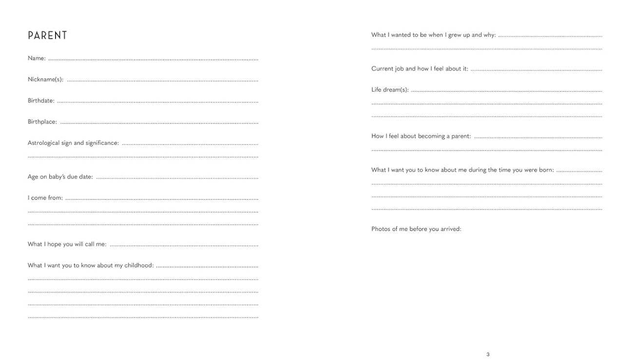 When complete, you'll have a nuanced portrait of your baby's life through reflections, memories, history, and stories--a keepsake to be cherished throughout their life.