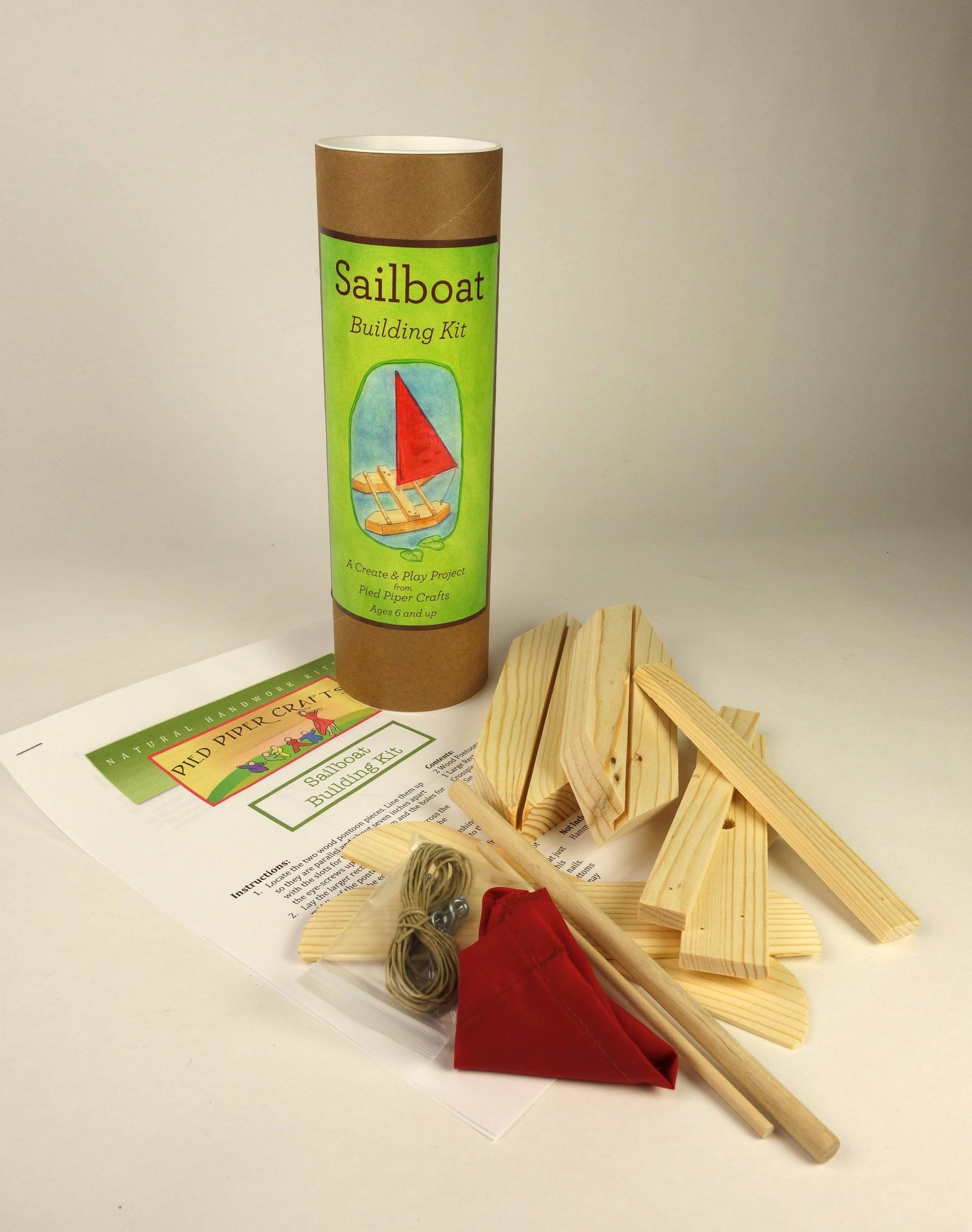 The kit includes nails and eye screws for easy assembly and a waterproof rip-stop nylon sail that will propel the little boat.