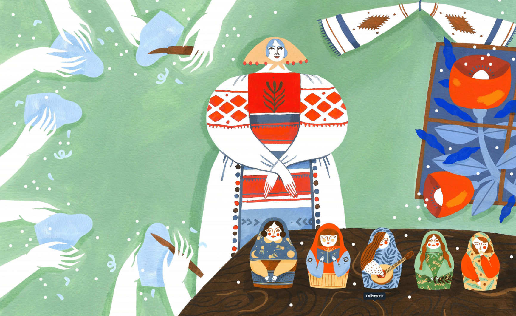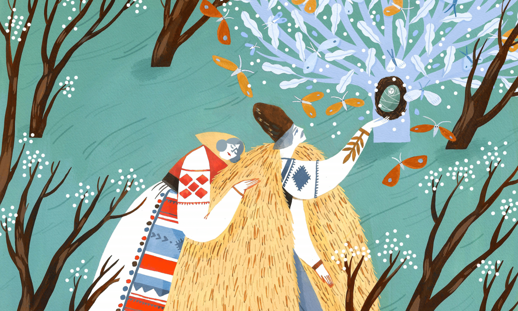 When a great white oak gifts an old man a branch imbued with magic, he carves five wooden dolls “each smaller than the last.” The wooden dolls take on a life of their own as they frolic from one season to the next bringing the old man and his wife a joy they had always longed for. Beautiful verse and stunning, traditional illustrations full of woodland creatures and playfully painted matryoshka dolls explore a tale of heartache, hope, and love. Hardcover picture book