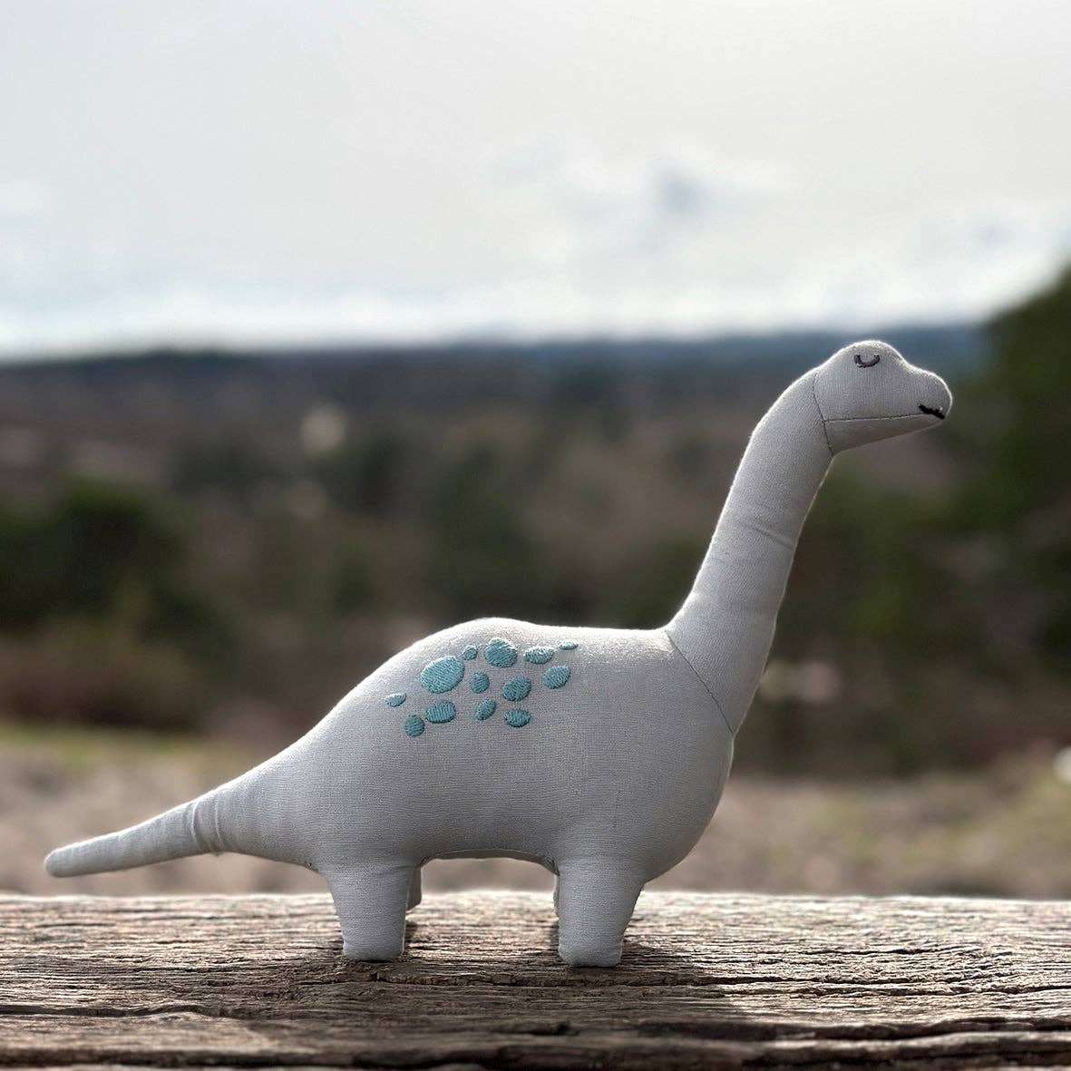 The Brontosaurus toy is a perfect gift for children, finished in natural linen fabrics of the highest quality. This cuddly soft toy is a beautiful addition to a nursery, and also supports important language and story-telling development with children.