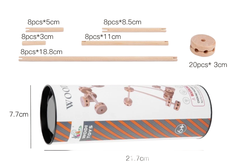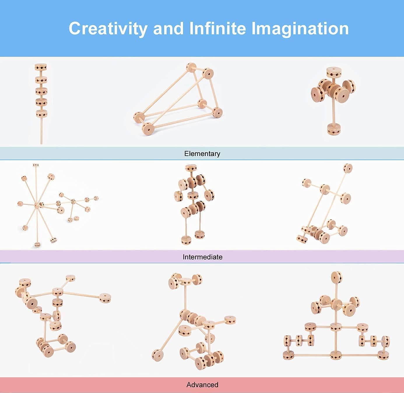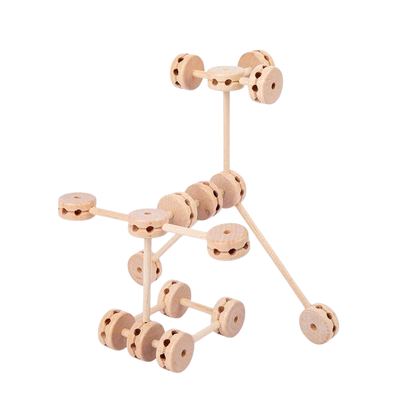 Made from 100% natural, non-toxic wood with gently smoothed edges, this set is safe for little creators and wonderfully durable for years of inventing. The round connectors and varying rod lengths make it easy for children to explore early engineering concepts through experimentation, collaboration, and open-ended design.