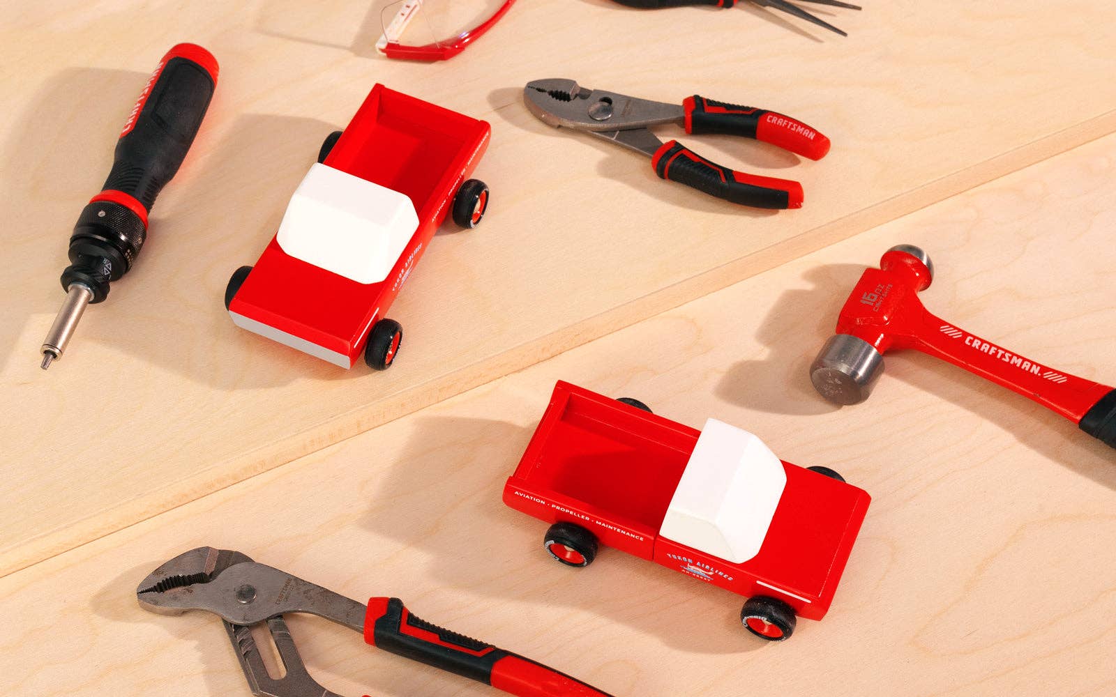 Materials & Info: Solid Beech Wood, water-based paint and clear urethane coat. ABS plastic rims, with rubber tires.