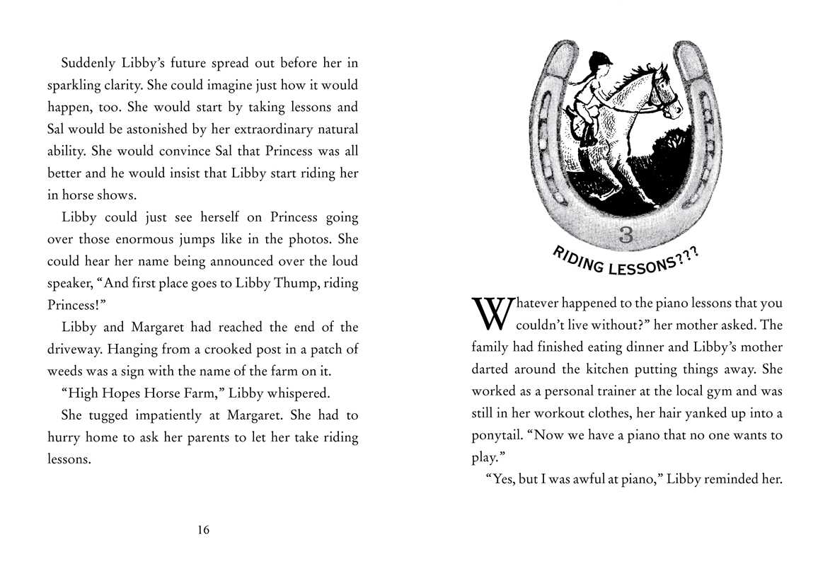 Ten-year-old Libby Thump has big dreams — dreams filled with horses, freedom, and galloping across open fields. She sketches horses in her notebook, daydreams about lessons, and longs to ride like the confident riders she admires. But when her mom gives the riding lessons to her older sister, Brittany, instead, Libby’s heart sinks. It seems no one understands her — not her mom, who wishes she were “more girly,” and not Brittany, who’s far more interested in boys than bridles.