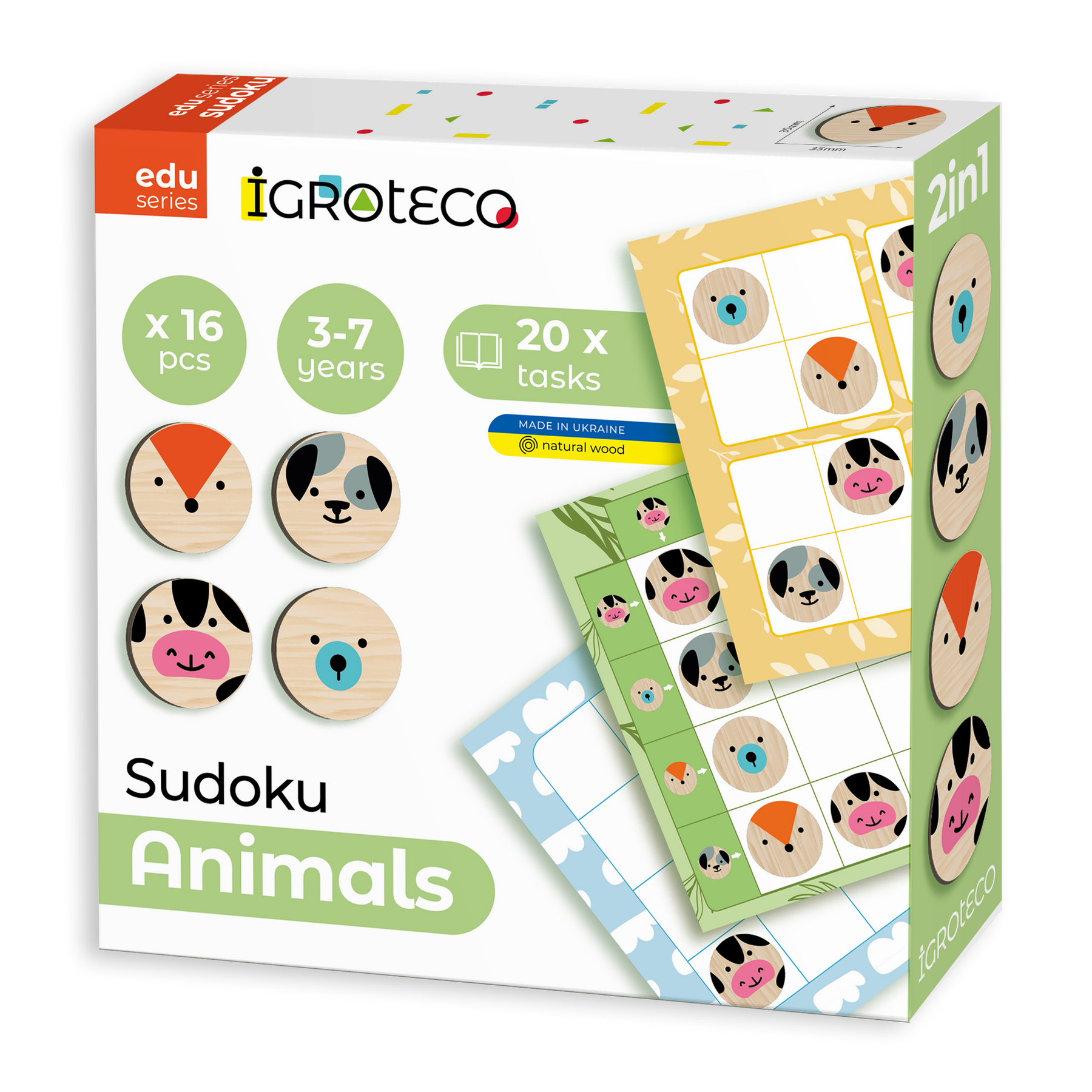 SUDOKU Animals is a puzzle in which you have to place tiles with the image of animals in a 4x4 table so that each tile appears only ONCE in horizontal and vertical rows.